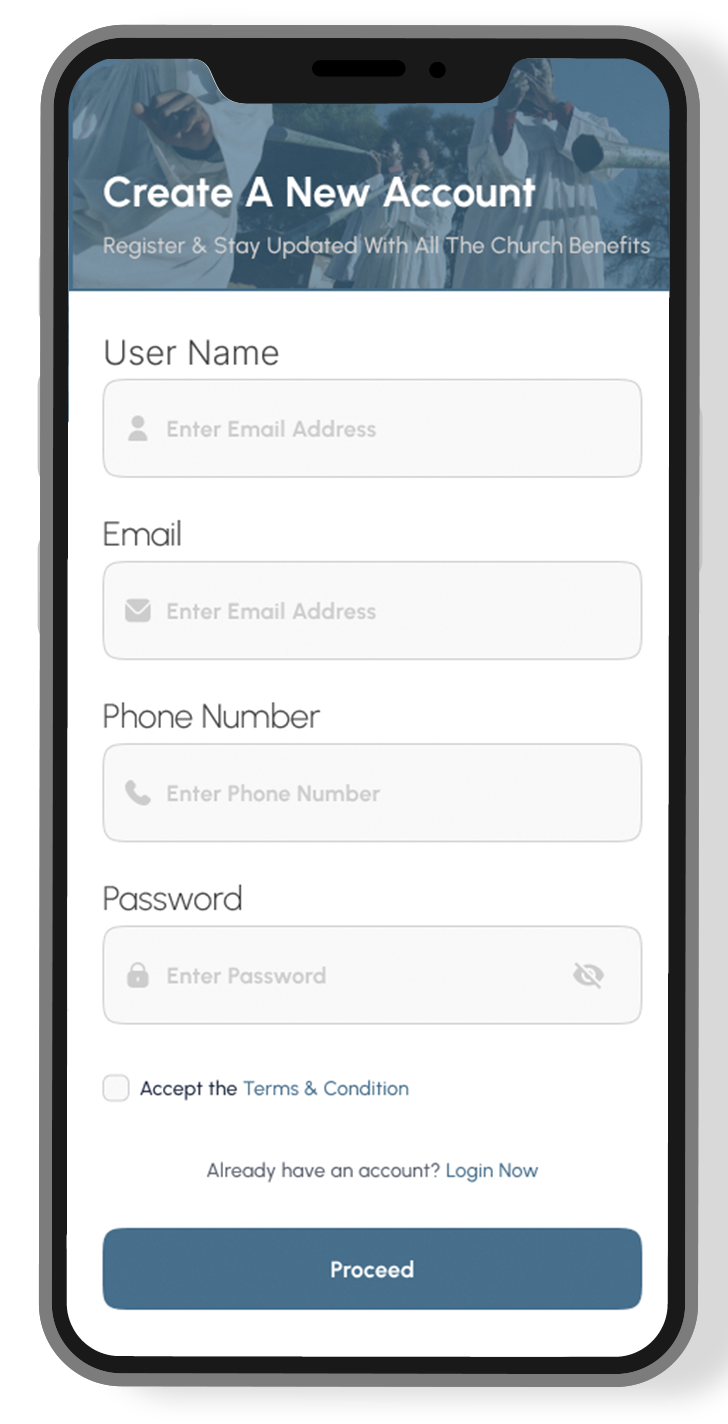 Registration is open to Ebuhleni congregants. Users may be required to verify their details to access certain services and exclusive church content.