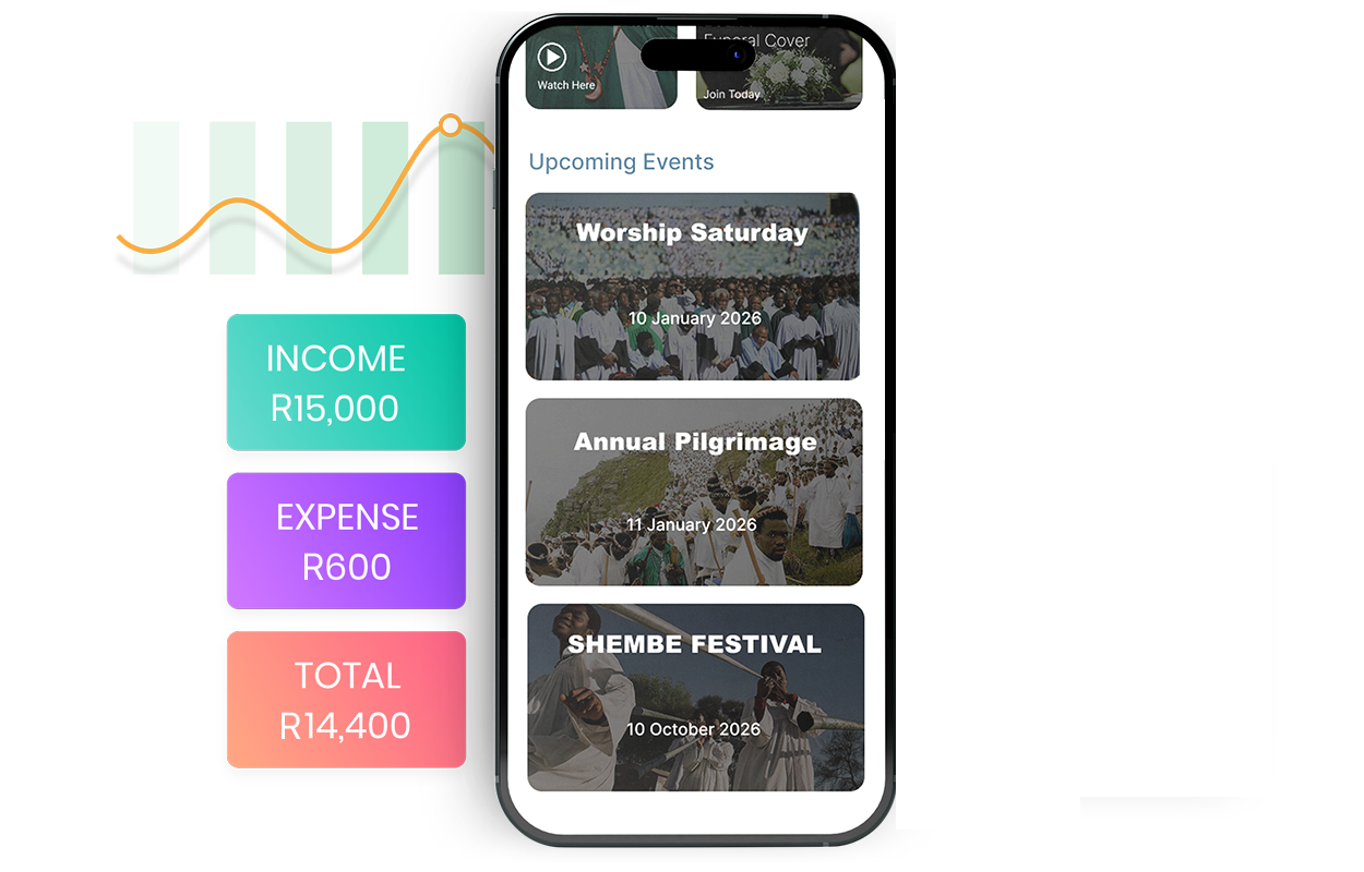Ebuhleni Digital App is our official digital platform to unite congregants, improve communication, and support access to modern services while honouring the Church’s traditions and values. Through this platform, members gain access to services including Ebuhleni Banking offering secure banking and savings solutions.